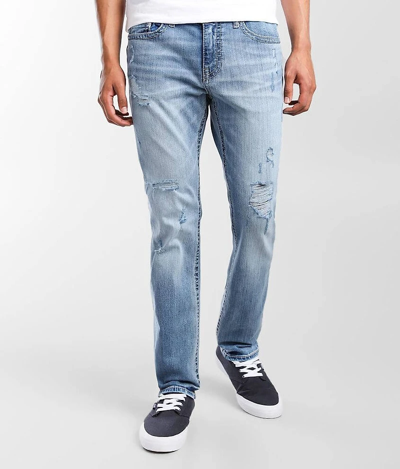 Boys sizes available! See Size Guide for more info Slim fit jean Comfort stretch fabric Straight from knee to hem Low rise, 15" bottom opening Embroidery on pieced back pockets Hand sanding, whiskering, grinding, dremmeling and destruction with fill yarn details Zip fly Shoe sku 954382 Model Info: Height: 6'1" | Chest: 34 1/2" | Waist: 31" | Hip: 39 1/2" | Wearing Size: 32x32
