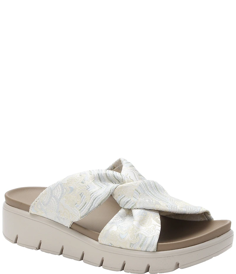 Alegria Rylie Satin Brocade Knotted Platform Slide Sandals