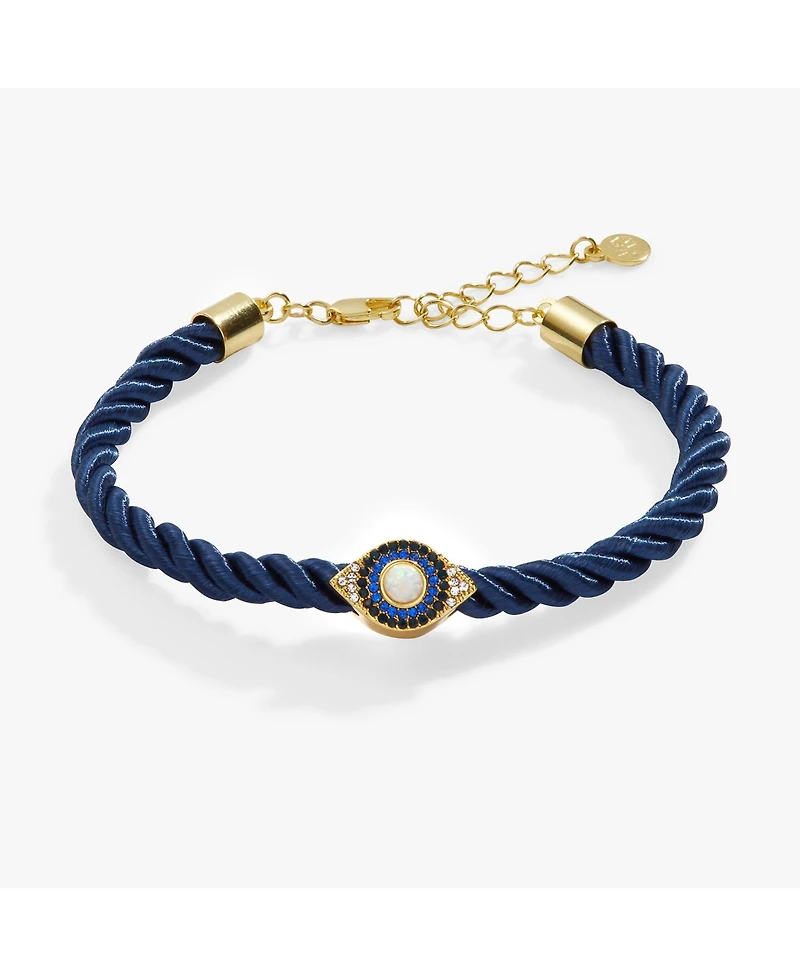 This stylish Evil Eye Adjustable Cord Bracelet is a beautiful Summer accessory. Adjust this twisted cord bracelet with the adjustable chain clasp for the perfect fit.andnbspThe crystal-infused evil eye charm is an enigmatic finishing touchandnbspwith itsandnbspopal stone center.