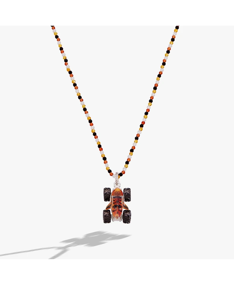 Smash and crash with this bold pendant featuring an awesome Hot Wheels Monster Truck design complete with spinning wheels that actually move. The charm showcases eye-catching printed wrap details and signature hexbolt accents, all strung on a beaded necklace that's ready for adventure. Perfect for Hot Wheels fans who want to wear their passion.