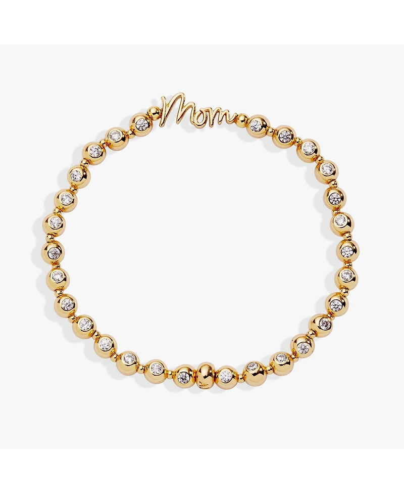 Slip on this delightful Mom stretch bracelet and let the sparkling crystal beads dance around your wrist with playful charm. The elongated mom plaque, written in elegant script, is your little love note you can wear anywhere. Perfect for the woman who believes in the everyday magic of family—a fun, meaningful accessory that celebrates your special bond with style and joy.