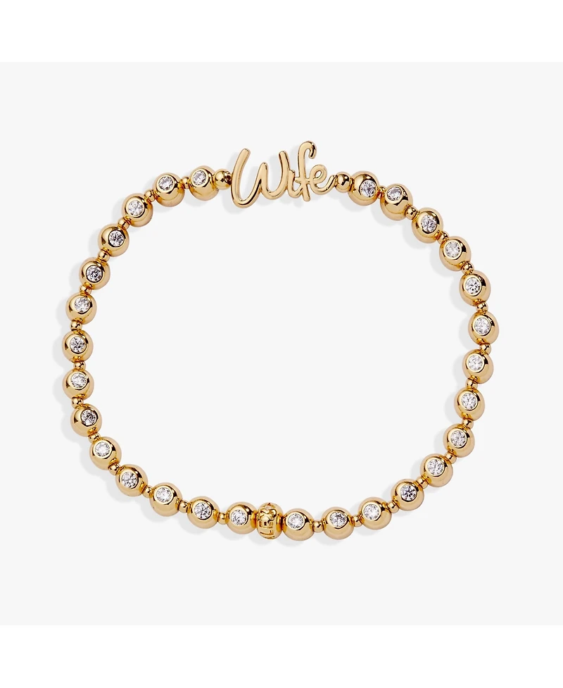 Slip on this delightful Wife stretch bracelet and let the sparkling crystal beads dance around your wrist with playful charm. The elongated wife plaque, written in elegant script, is your little love note you can wear anywhere. Perfect for the woman who believes in the everyday magic of family—a fun, meaningful accessory that celebrates your special bond with style and joy.