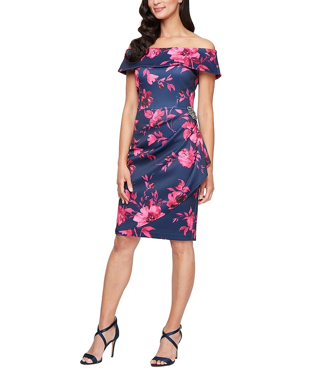Alex Evenings Off-the-Shoulder Floral Print Sheath Dress