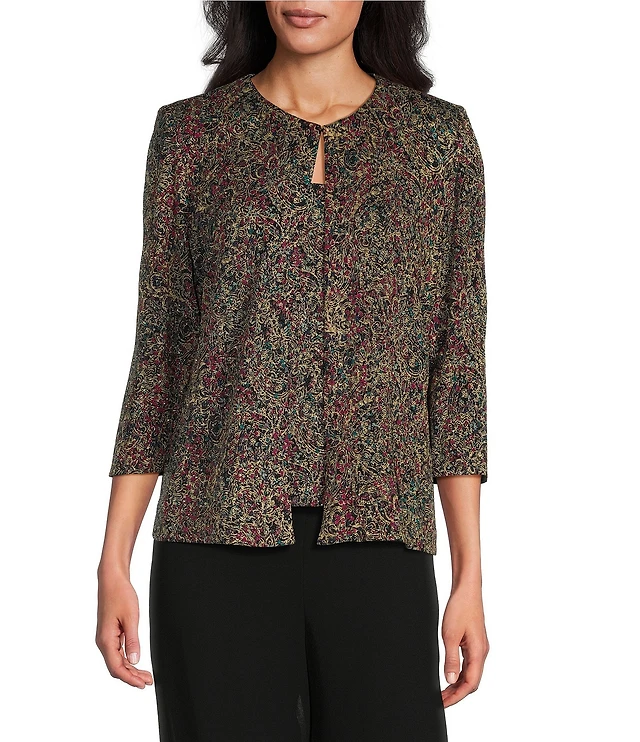 Alex Evenings Printed Glitter Button Front Jacquard Knit Twinset