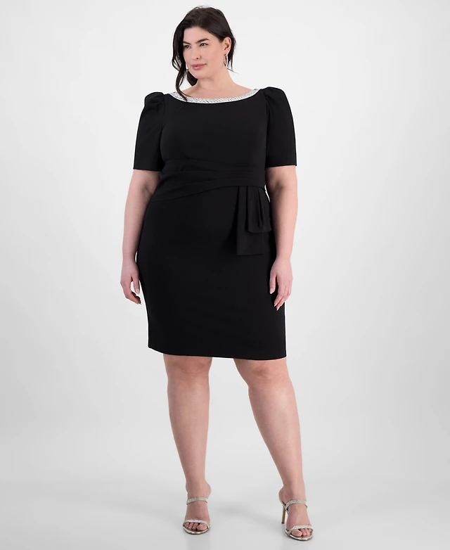 Alex Evenings Plus Size Boat Neck Puff-Sleeve Sheath Dress