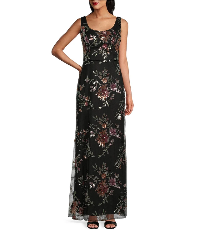 Alex Evenings Sequin Floral Scoop Neck Sleeveless Sheath Dress