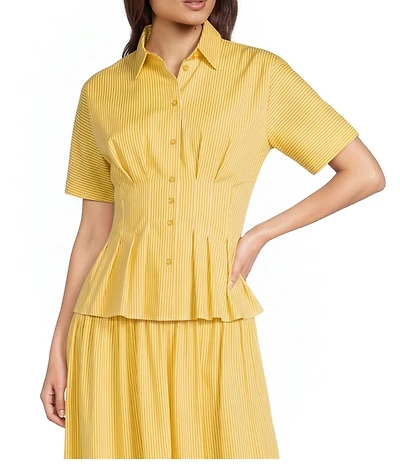 Alex Marie Coordinating Dorothy Stripe Sateen Collar Neckline Short Sleeve Blouse