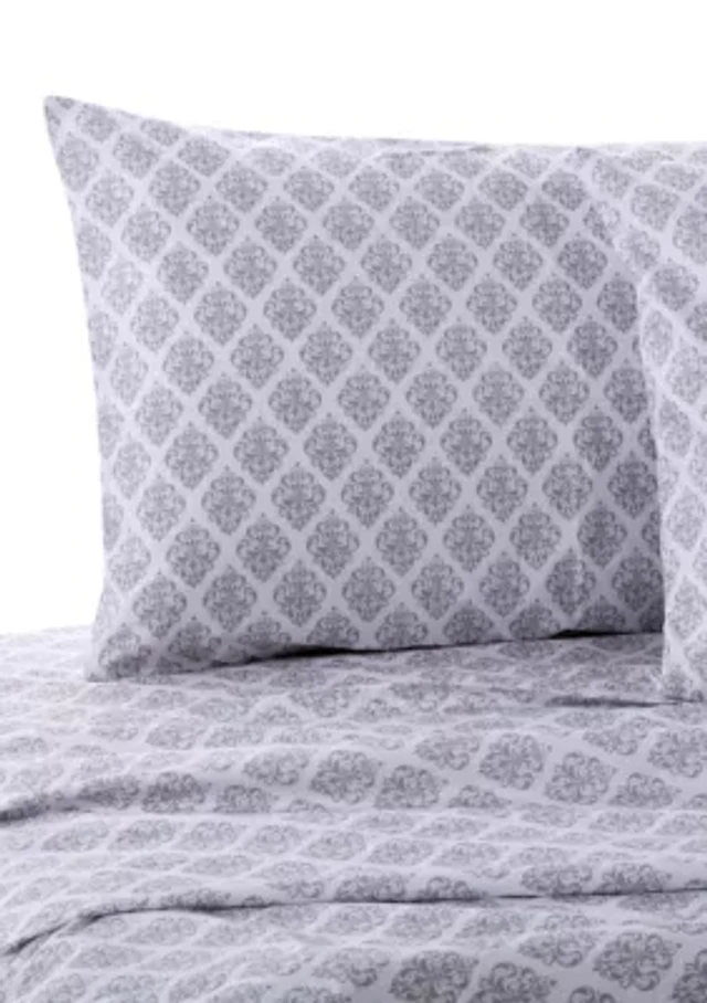 Tribeca Living Flannel Damask Printed Extra Deep Pocket Sheet Set