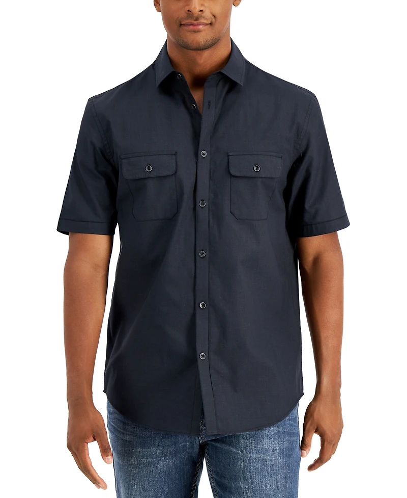 Safari-ready-or-not, the textured lines and front-flap pockets of this short-sleeve button-down by Alfani add adventure to any look.