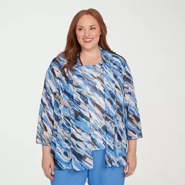 Alfred Dunner Al Fresco Womens Plus 3/4 Sleeve Layered Top