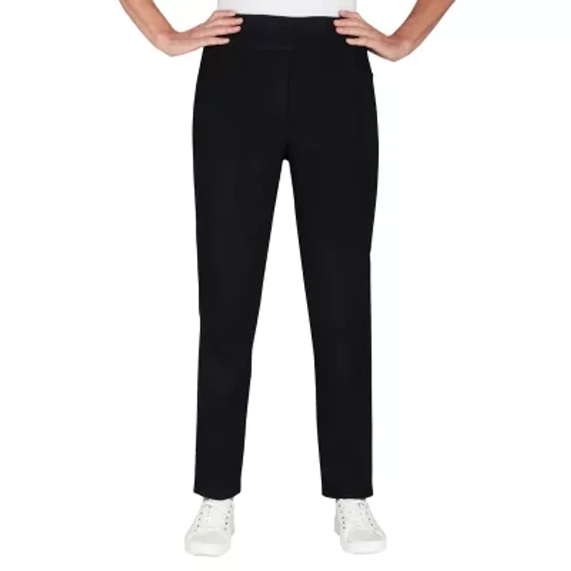 Style comfortably in these pull-on denim pants from Alfred Dunner's women's collection. They are made from a soft stretch-cotton with a smooth elastic waistband, side pockets, and straight legs. Wear them with a t-shirt and loafers.