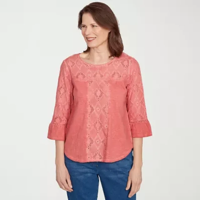 Alfred Dunner Austin Womens Crew Neck 3/4 Sleeve T-Shirt