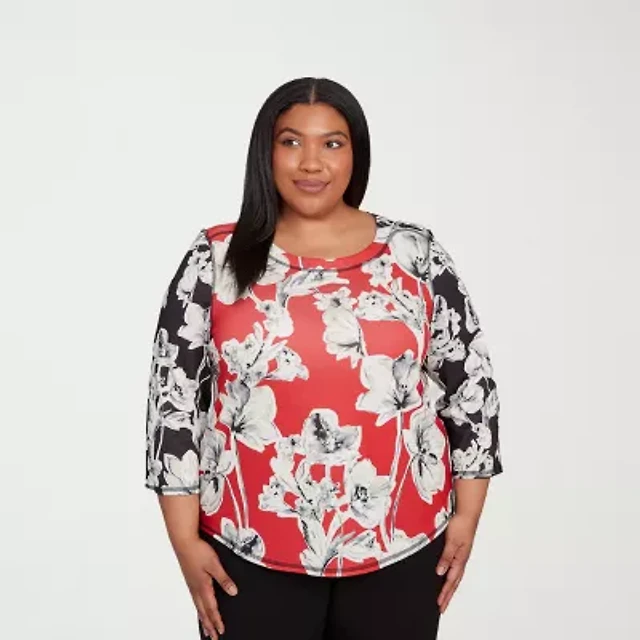 Alfred Dunner Jet Setter Womens Plus Split Crew Neck 3/4 Sleeve Blouse