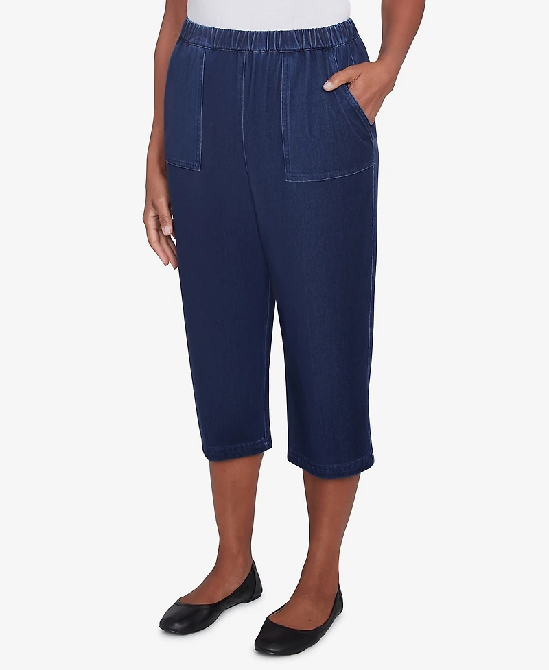 Alfred Dunner Petite Free Spirit Knit Denim Capri Pants
