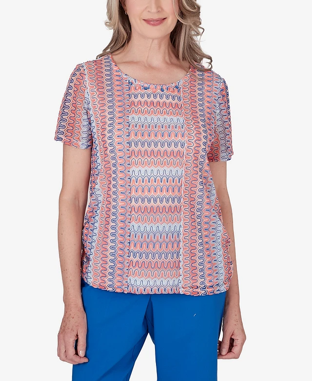 Alfred Dunner Petite Neptune Beach Textured Stripe Side Ruched Top