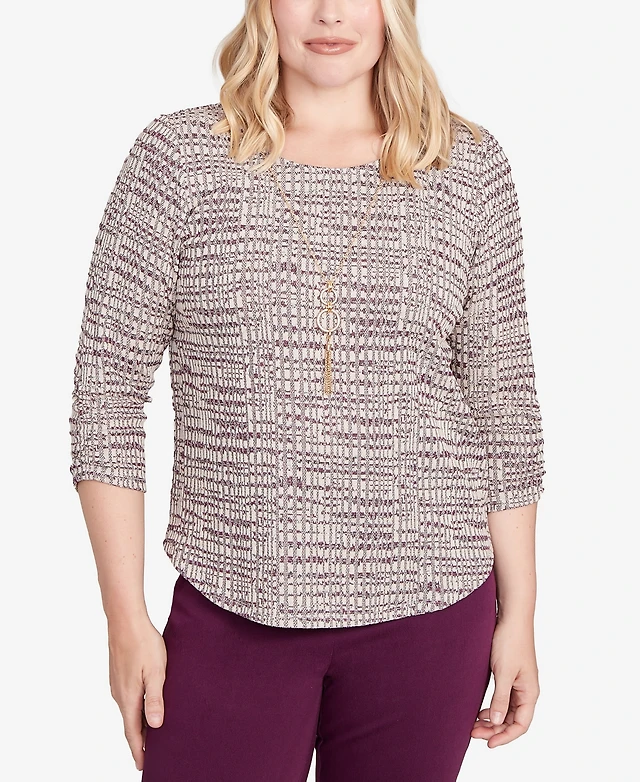 Alfred Dunner Women's Urban Legend Textured Shimmer Space Dye Top with Necklace