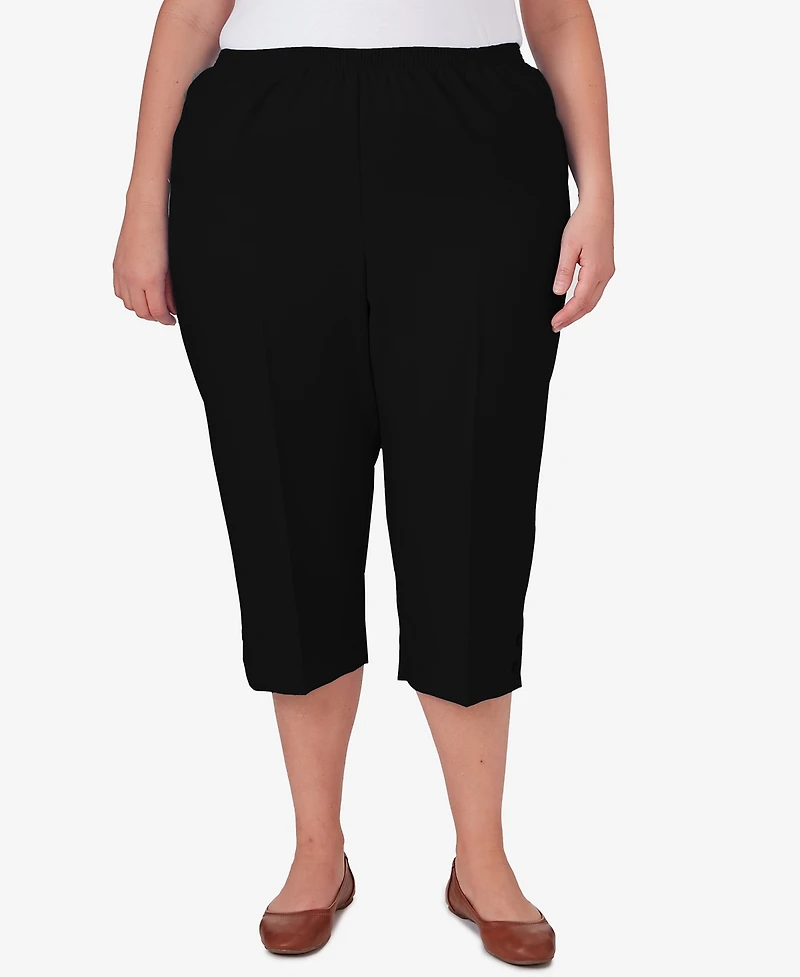 Alfred Dunner Plus Classic Button Hem Gathered Waistband Capri Pants