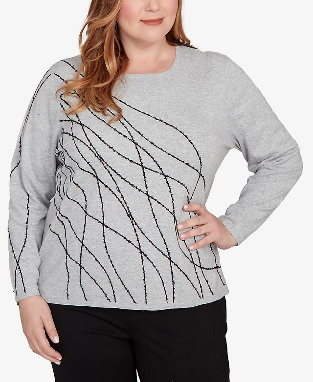 Alfred Dunner Plus Size Jet Setter Abstract Cording Sweater