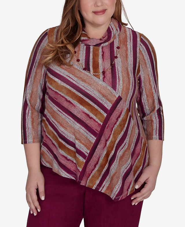 Alfred Dunner Plus Size Wine Country Spliced Stripe Cowl Neck Top With Necklace