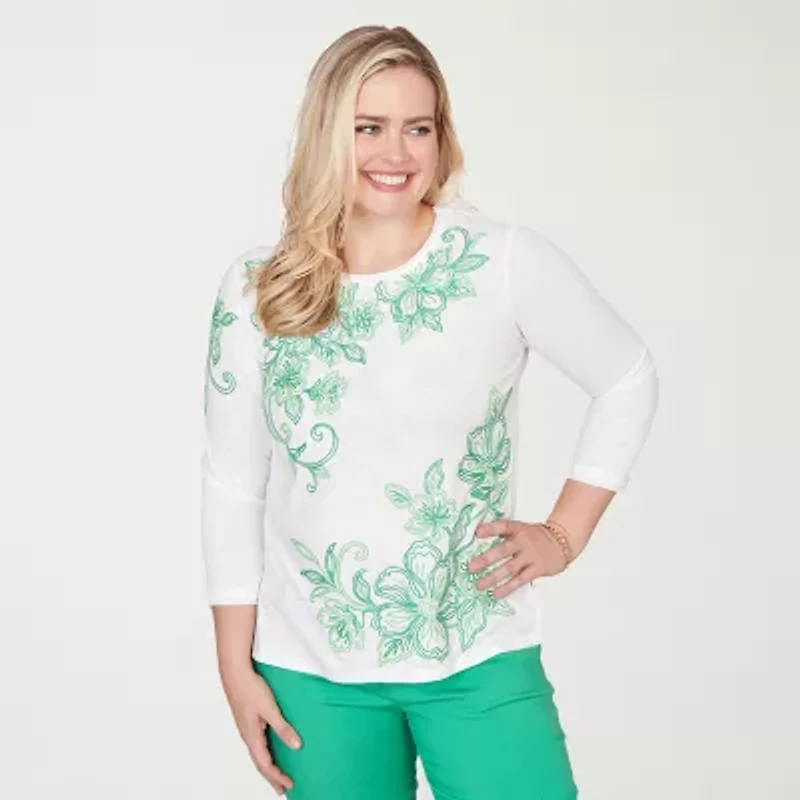 Alfred Dunner Resort Living Womens Crew Neck 3/4 Sleeve T-Shirt