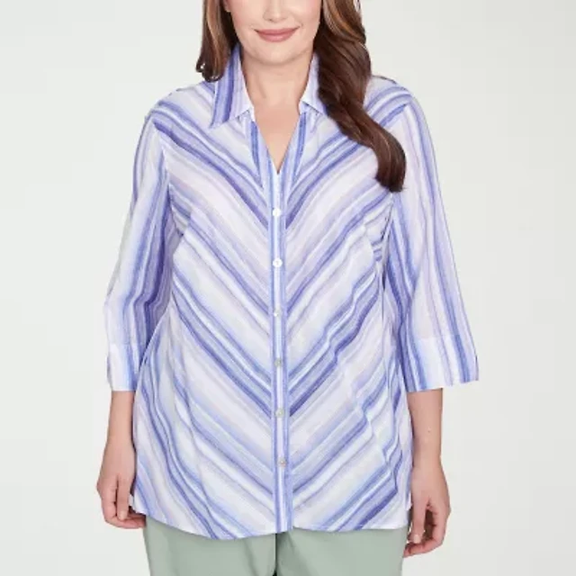 Alfred Dunner Mykonos Womens Plus 3/4 Sleeve Button-Down Shirt