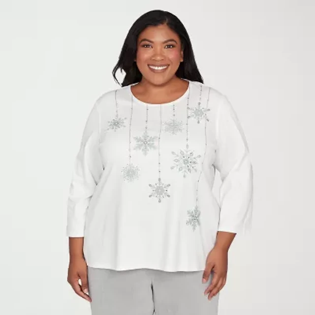 Alfred Dunner Womens Plus Crew Neck 3/4 Sleeve T-Shirt