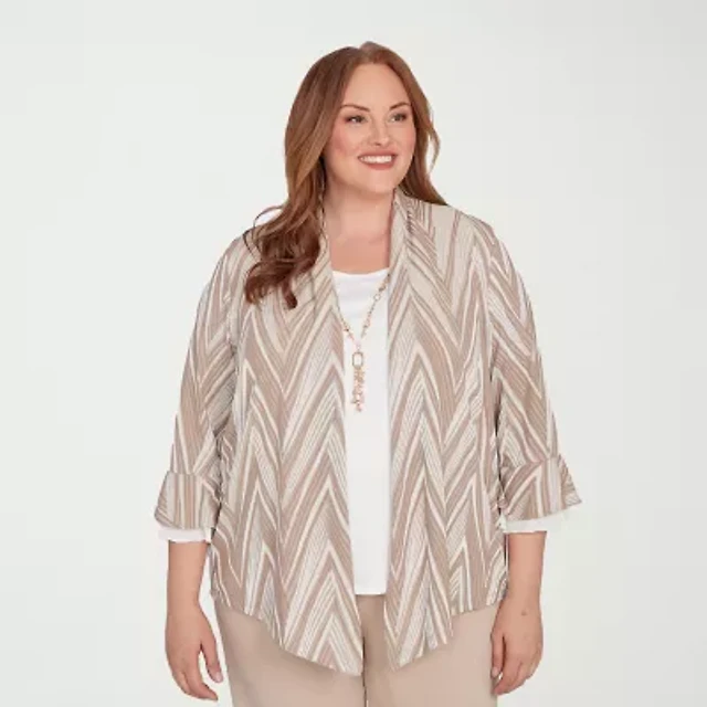 Alfred Dunner Al Fresco Womens Plus 3/4 Sleeve Layered Top