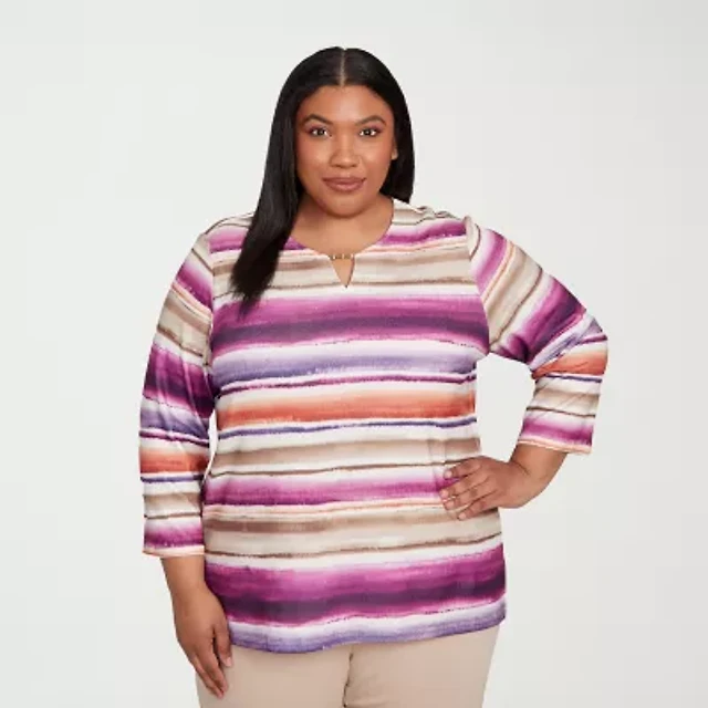 Alfred Dunner Womens Plus Split Crew Neck 3/4 Sleeve T-Shirt