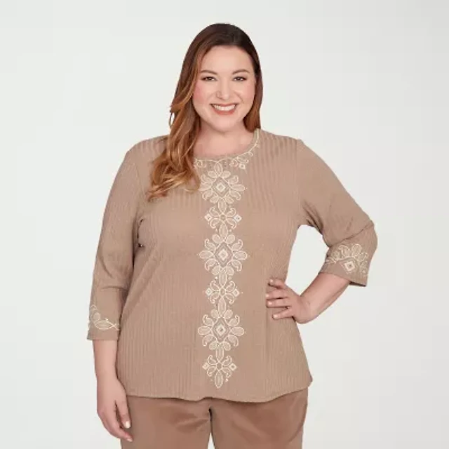 Alfred Dunner Womens Plus Crew Neck 3/4 Sleeve T-Shirt