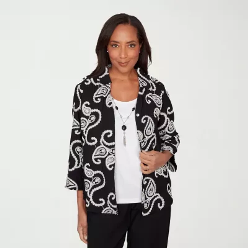 Alfred Dunner Womens 3/4 Sleeve Embroidered Blouse