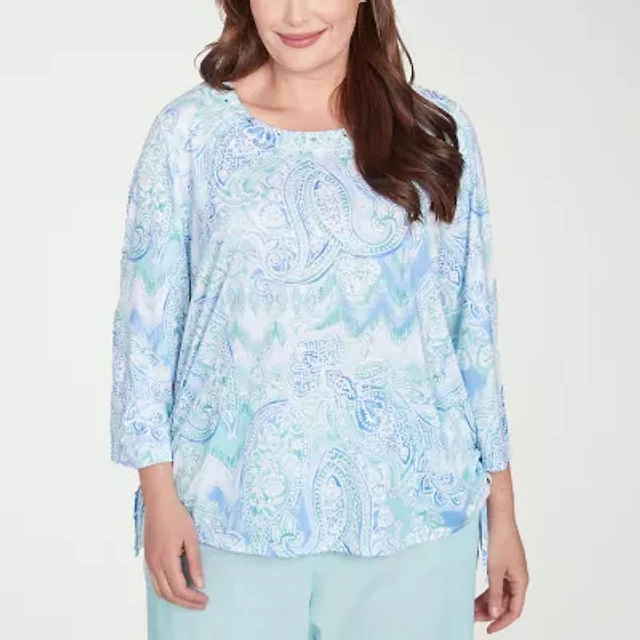 Alfred Dunner Mykonos Womens Plus Crew Neck 3/4 Sleeve T-Shirt