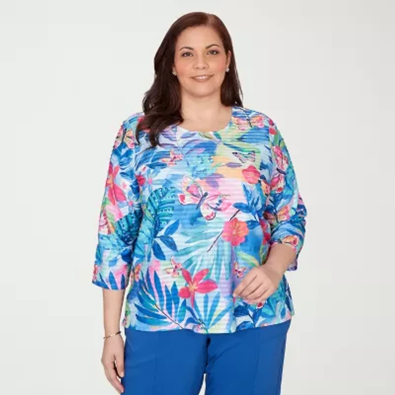Alfred Dunner Womens Plus Crew Neck 3/4 Sleeve T-Shirt