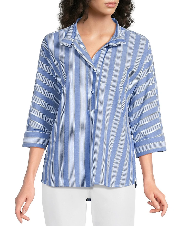 Ali Miles Woven Yarn Dye Stripe Wire Collar 3/4 Dolman Sleeve TunicAli Miles Woven Yarn Dye Stripe Wire Collar 3/4 Dolman Sleeve TunicAli Miles Woven Yarn Dye Stripe Wire Collar 3/4 Dolman Sleeve TunicAli Miles Woven Yarn Dye Stripe Wire Collar 3/4 Dolman Sleeve Tunic