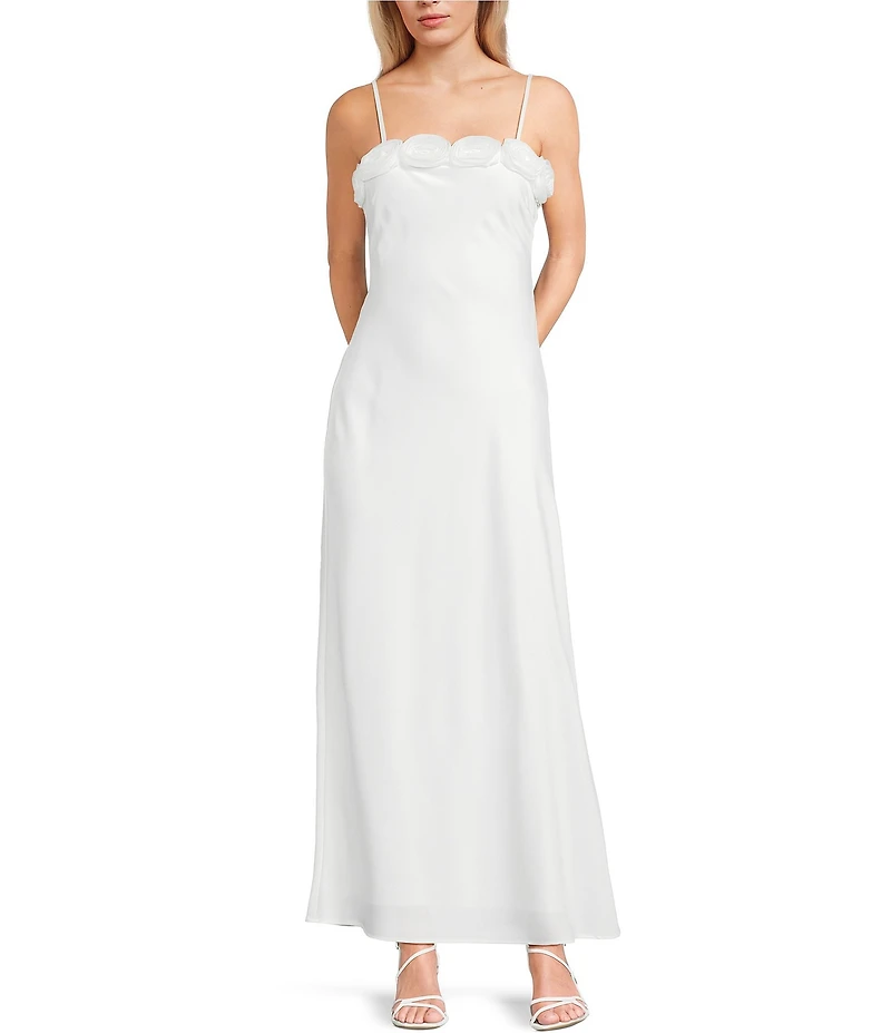 Allison & Kelly Satin Floral Applique Maxi Dress