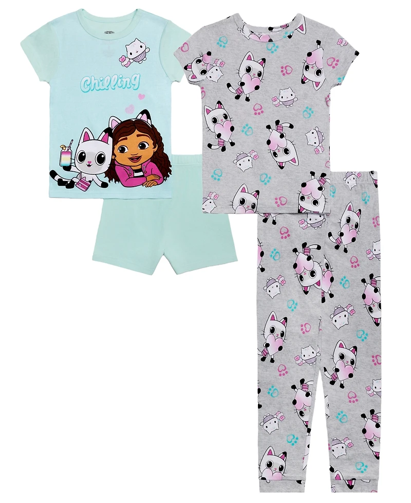 Ame Girls' 4-8 Gabby's Dollhouse Print Tops, Shorts and Pants, 4-Piece Pajama Set