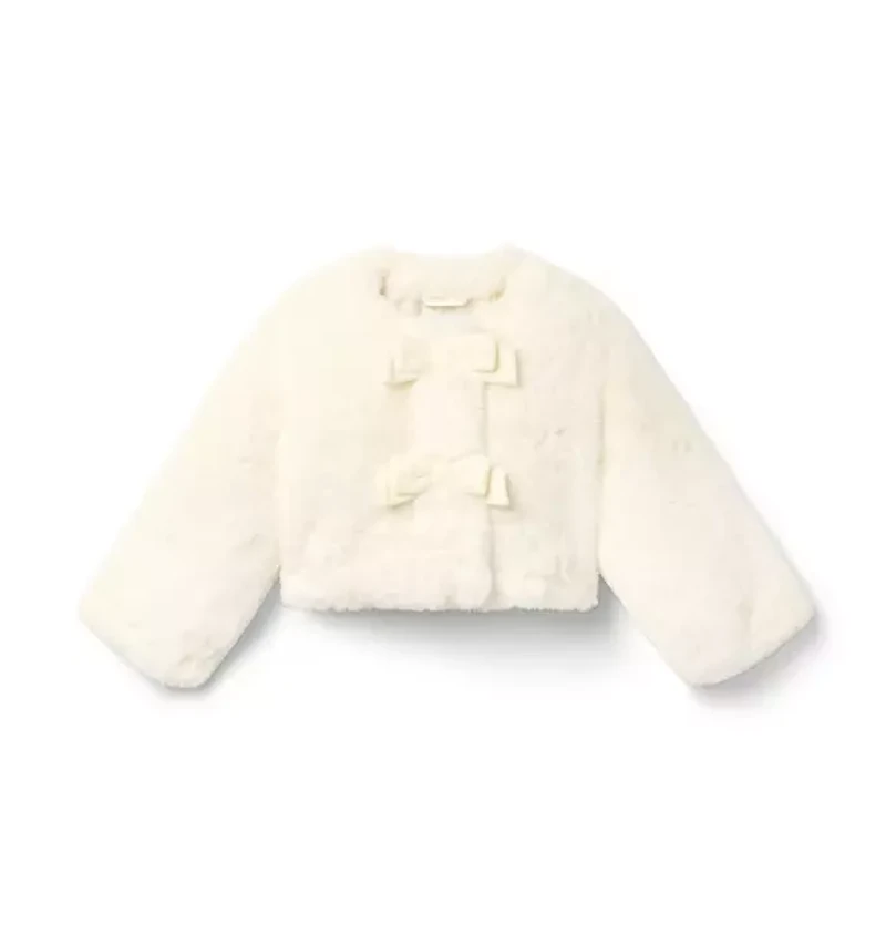 Our limited-edition cropped jacket is made to match with their favorite American Girl doll. Designed with bow details and the softest faux fur. 100% Polyester Faux Fur; Lining: 100% Polyester Fully Lined Long Sleeve Button Front Now Including Tween Sizes Up To 16 Machine Wash, Gentle Cycle; Imported