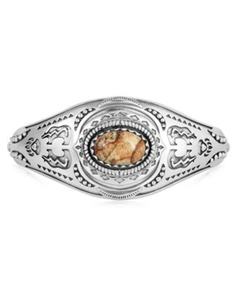 American West Jewelry Sterling Silver Picture Jasper Oval Cut Bear Cuff Bracelet Size Small