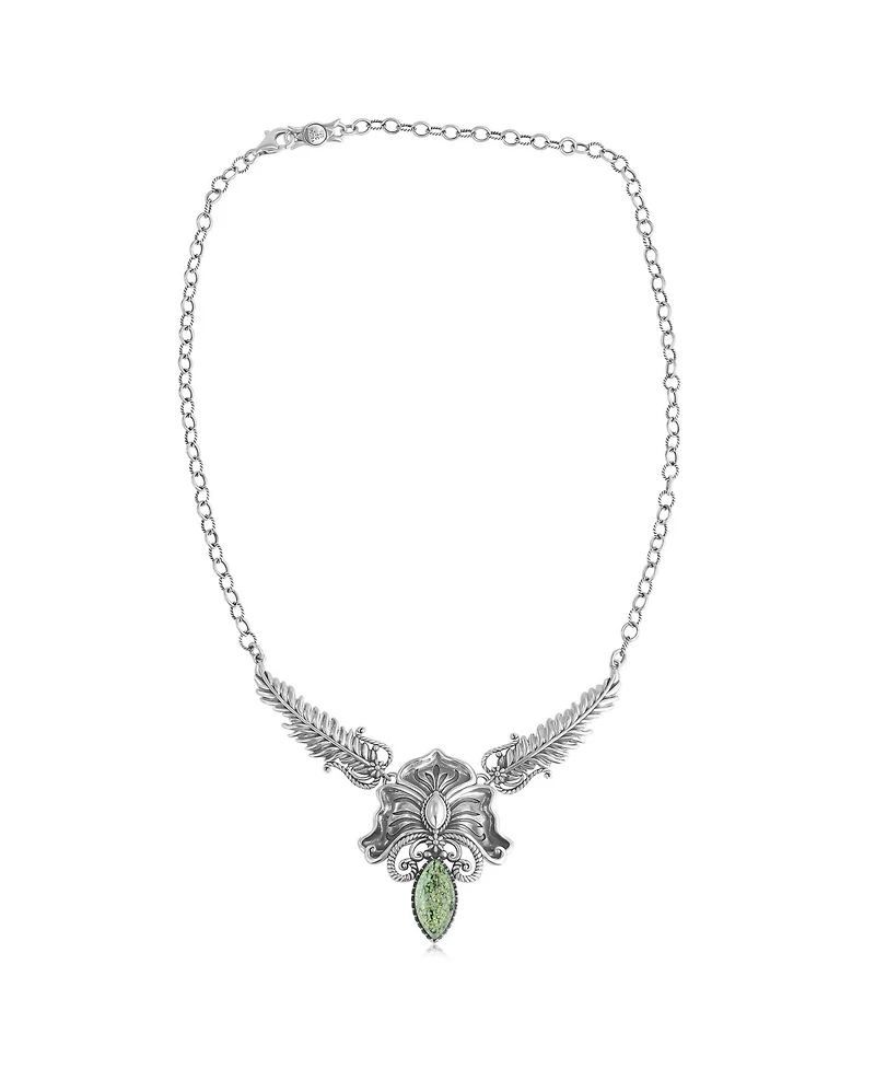 American West Jewelry Sterling Silver Serpentine Cactus Flower Marquise Feather Necklace, 20 Inches