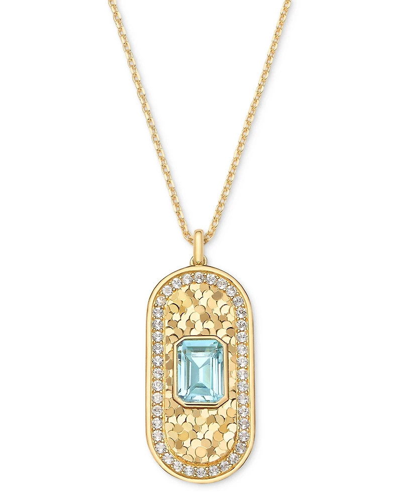 Amethyst (1-1/2 ct. t.w.) & White Topaz (5/8 Oval Glitter Texture 18" Pendant Necklace 14k Gold-Plated Sterling Silver (Also Sky Blue
