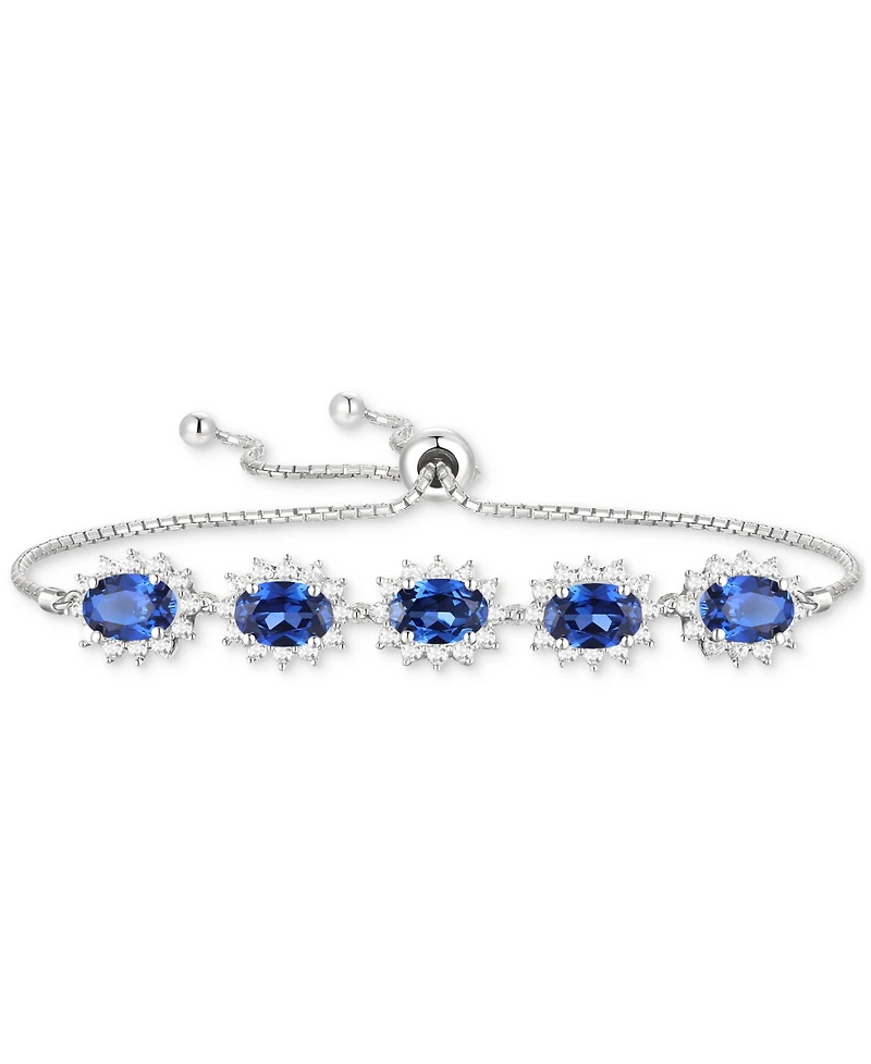 Amethyst (2 ct. t.w.) & Lab-Grown White Sapphire (3/4 Halo Five Stone Bolo Bracelet Sterling Silver (Also Morganite, Lab-Gro