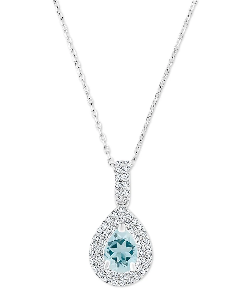 Amethyst (5/8 ct. t.w.) & Lab-Grown White Sapphire (1/2 Teardrop Halo Birthstone Pendant Necklace Sterling Silver, 16" + 2" extender (Als in Franklin, TN