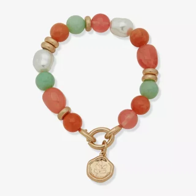 Monet Jewelry Gold Tone Womens Glass Simulated Pearl Stretch Bracelet