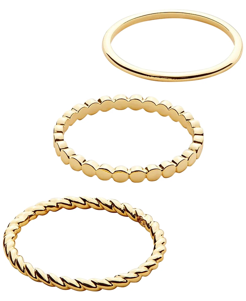 What's better than one gold ring Three gold rings. This gold ring set is the perfect match between elevated basics and strong layering pieces, with a touch of sparkle. Wear them on the same finger, or mix and match them, they'll look perfect either way. This gold ring set features three rings dipped in a layer of 14k gold for extra shine.
