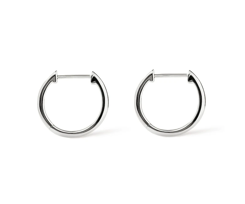 Crafted in sterling silver and dipped in rhodium for a high-polish finish, our small slim endless hoops are perfect for stacking with other earrings. Each pair is carefully crafted and hypoallergenic, making them a versatile addition to your everyday wear.