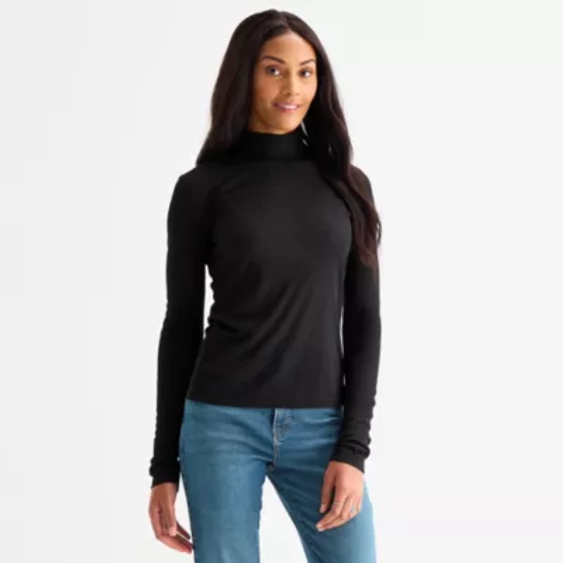 a.n.a Sheer Womens Mock Neck Long Sleeve T-Shirt