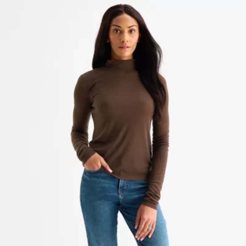 a.n.a Sheer Womens Mock Neck Long Sleeve T-Shirt