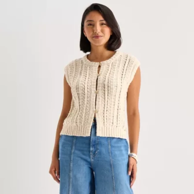 by&by Womens Round Neck Button Juniors Sweater Vest