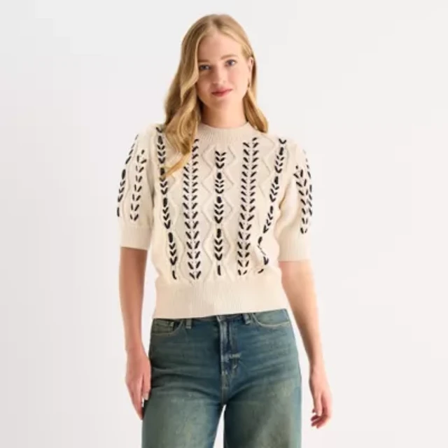 St. John's Bay Womens Crew Neck Short Sleeve Pullover Sweater
