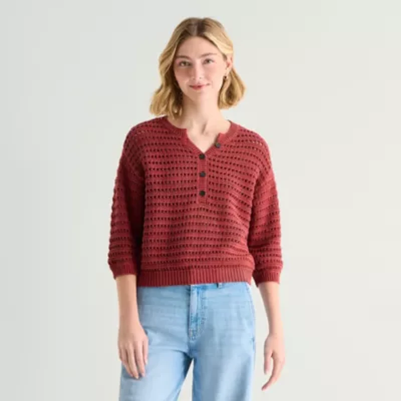 a.n.a Womens Henley Neck 3/4 Sleeve Pullover Sweater