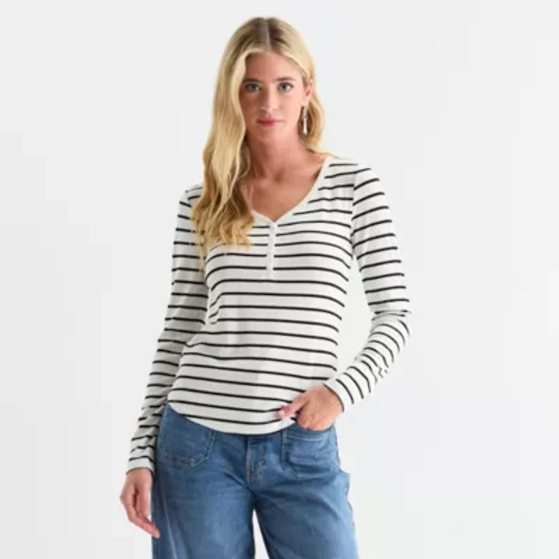 a.n.a Womens Henley Neck Long Sleeve T-Shirt